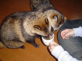 タヌにはできるだけ生野菜かドッグフードか天然エサ(昆虫など)をあげるようにしていますが、お婆ちゃんは孫がかわいくて仕方ありません。