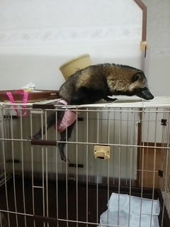 6月 ケージから脱走する瞬間を捉えました。 屋根の隙間から出ているので、屋根を固定しました。 |