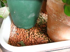 ところでわたしは、トレイの中にセラミスを敷き、その上に小鉢を置いています。