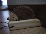 こんな可愛いはりねずみが玄関を入ると目に入ります。実はこれ、子供部屋のドアストッパー。