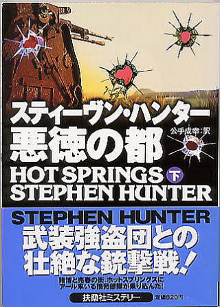 ”HOT SPRINGS” by Stephen Hunter スティーヴン・ハンター作 公手成幸訳 1946年、酒浸りの日々を送っていた元海兵隊先任曹長アール・スワガーは硫黄島の戦功により名誉勲章を授与された。式の後、彼の前に二人の男が現れる。野心満々のガーランド郡検察官フレッド・ベッカーと伝説的な英雄である元FBIエージェントのD・A・パーカーだった。二人はギャングが牛耳る歓楽の街ホットスプリングズの浄化をもくろみ、その為に摘発部隊を軍隊並みに鍛え上げる役をアールに依頼してきたのだ。彼は承諾する。だが、妻からは子供ができたことを知らされた。 |