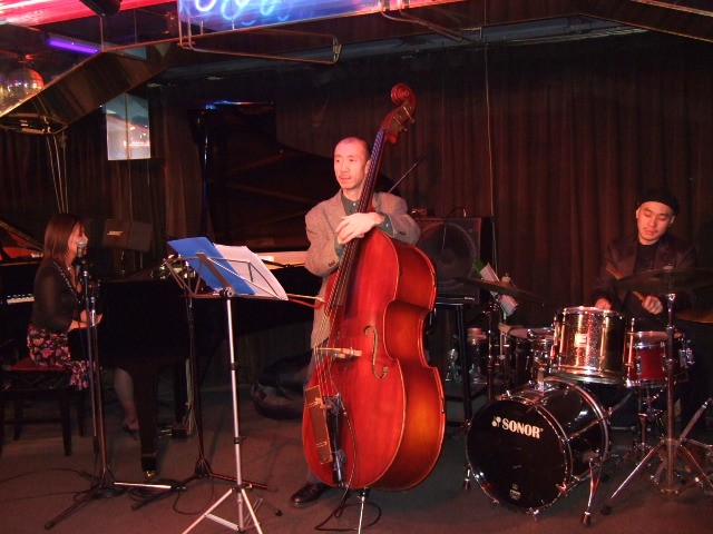 撮影場所:新宿ピットイン、渋谷ココなど 日付:2004から2007年 パーソネル:山岸笙子(pf)、横山裕(b)、志村洋一(b)、山下弘治(b)、公手徹太郎(ds)、 大山日出男(sax)、山岸隆志(vo)、水上まり(vo)、マリア・エヴァ(vo) 最後の写真は2004年インペリアルジャズフェスティヴァルでのもの。 左より、公手徹太郎、横山裕、大山日出男、北村英治、スコット・ハミルトン、山岸笙子