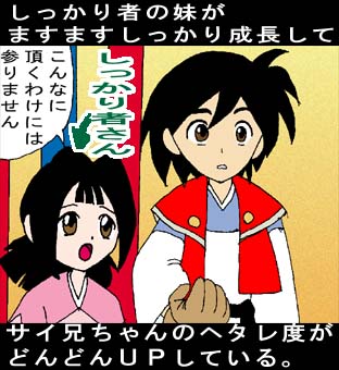 実際は本当に、相良さんたちはヒヲウ達を好意的に思ってくれていたのですけど。 問題はお坊さんでした。 実はこのお坊さんは、桜田門外の編で、逃げてしまった元お侍さん。 それを風陣に脅されて、ヒヲウ達を落としいれようとするのですが 子供相手にひどい事も出来ず、改心し、ヒヲウ達を庇って死んじゃうわけです。 ……すっげーありきたりで。 このお坊さんが、カラクリ嫌いなひとなわけです。 桜田門外の編で、目前で大きなカラクリが殿様を暗殺するところを見てしまったというのが理由らしいのですが、 今までのOp前の話が関わってきたのは初めてです。面白くなってきました。 まぁ、カラクリ嫌いでいいじゃないか、と思っていたら、ヒヲウが無理やりちょっかい出して最後には「カラクリはもう怖くない」と。 いい話じゃないですか。(笑) もうなにがなんでもカラクリを好きでないと、許されないようです、このアニメ。 ただただ。毎回ホムラが敵をたおすのですが、今回の敵は大量のサルのカラクリ。 いつもの静電気かとおもったら、今度は振り落として終わった。 こんな小さくて数で勝負するカラクリこそ、静電気で一匹残らず倒せるのに! なんでしなかったんだ!! テツが間になわなかったのか!? そうだよ!テツがきっと間に合わなかったんだ!!(爆笑) 漕いでたんだよ!あの時も!!(爆笑) 敵もだんだんクセのあるのが出てくるようになったけど、再出はあるのか? ホムラが強くなっているのか敵が弱いのか最近は解らない(大笑) 今週のヒロイン→風陣の急襲に、外にでようとして、危険を避けるために 坂本に、人形のように抱えられたヒヲウ。ちょ〜っと可愛らしすぎだと思うんですけど。