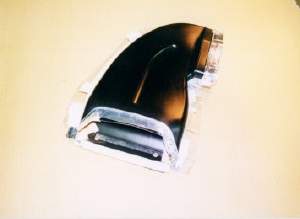離型処理をして、 クリアゲルコート、カーボンクロス、 ガラスマット、積層。 硬化後バリ取りをしてから合体。 外からテープなどで仮止めして 中からガラスロービングで一体化さします。 このダクトは開口部が広いのでハケで押さえる事が出来ました。 |