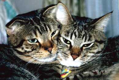 *コボ♂*<向かって左側> 1. コボちゃん・のんちゃん ・ 96年生まれ 2. 名前を呼ぶと飼い主の足元で ウネウネダンス をします。 3. ねずみ・ねこじゃらし・紐・羽根 4. 異物飲み。(ビニール袋・ビニール紐) ・・・・・・・・・・・・・・・・・・・・・・・・・・・・・・・・・・・・ *バビ♂*<向かって右側> 1. パピちゃん・怪獣ちゃん ・96年生まれ 2. 名前を呼ぶと連鎖反応で、 お手手グッパーします。 3. ねずみ・ねこじゃらし・紐 ・羽根 4. 我家で一番の悪戯っ子 頭突きで扉を開けて壊しちゃいました。 ★コボとパピは兄弟ではないのですが、 とても仲が良く、いつもこうして頬を くっ付けています。 オカマ同士超ラブラブです。 |