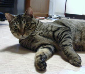 | * シャル ♀ * 1. シャル 2001.04.10生まれ 2. おっきな金色おめめ 3. お菓子を留めてる金色の針金を 輪っかにしたもの 4. 抱っこさせてくれない(ナデナデが好き) |