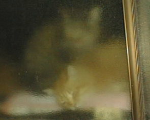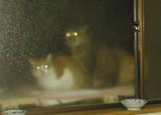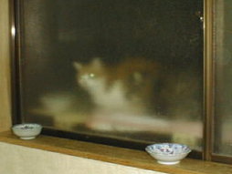 窓越しの親子ツーショット! 外のミルキーと子供のミー(ミルク) |