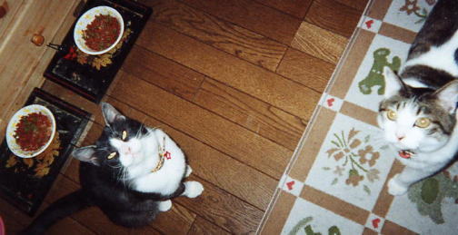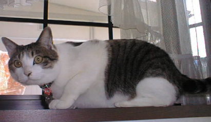* テン ♂ * 1. テンテン 96年9月10日生まれ 2. くりっとした目と かぎしっぽ 3. 猫じゃらし、ビニール袋を丸めたもの (特にスーパーの袋) 4. 障子破り トイレの砂こぼし・・・ |