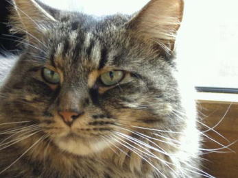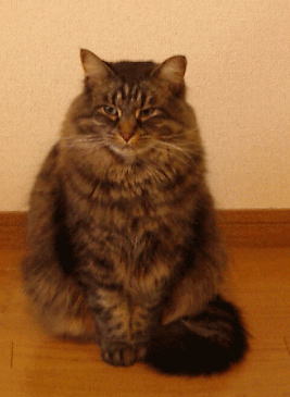 1. あまりに筋肉質なため、”ボブ・サップ”と呼ばれる 今日この頃。 1995年生まれ 2. ・成人女性の手首より太い、ぶっとい二の腕。 ・見かけによらず心優しき小心者。 (体はジャイアン、心はノビタ。) ・猫とは思えない体力&力の持ち主 ・「かわいいね」といわれると本当に 嬉しそうな顔になる ・額にはバットマン・マーク(Mの変形と思われる。) 3. 小動物。自分より小さくて動くもの全般 4. 走り出したら猪突猛進、カーブを曲がれない (通行人にぶつかる。) |