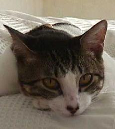 *MIE♂* 1. MIE ・ 96年生まれ 2. チャームポイントじゃないけど、 彼と出会ったことで猫大好き人間 になっちゃいました。 3. う〜ん・・・・ないんです。ボスだから 他の子が遊んでるものはとらないらしい。 4. よだれがすごいのとうんこつけて おしりすりすりすること。 あととっても強暴なとこ。 ★残念ながら、MIEちゃんは99年秋、 天国に逝きました…。 猫が苦手だったYukikoちゃんを 大の猫好きにしてくれたMIEちゃんに 感謝です。どうか安らかに・・・。★ |