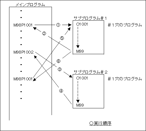プログラム中に同じパターンで加工するような部分が何箇所かある場合、そのパターンだけのプログラムを作っておきます。これをサブプログラムと呼びます。これをサブプログラムと呼びます。
