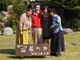 従業員のお姉ちゃんが撮ってくれると言うので 中庭で4人揃ってこれまたパチリ(右の写真)