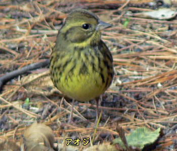 アオジ(ホオジロ科) Black-faced Bunting 日本列島を北から南まで、秋にはおびただしい数のアオジが南下します。高い山から郊外の住宅地の藪でも出会える冬の代表的な小鳥です。 |