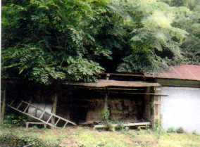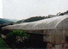 千両の栽培(奥にある黒い囲い) 杉尾