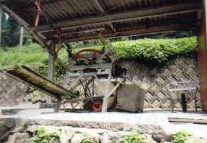 ばっさいした木をのせて山からおろす ロープ―ウエイ (杉尾)