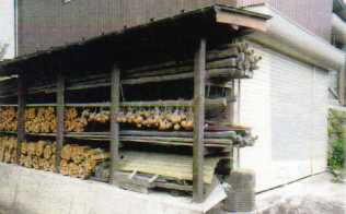 冬に備えて、切った木がたくさんつまれている (細川)