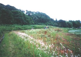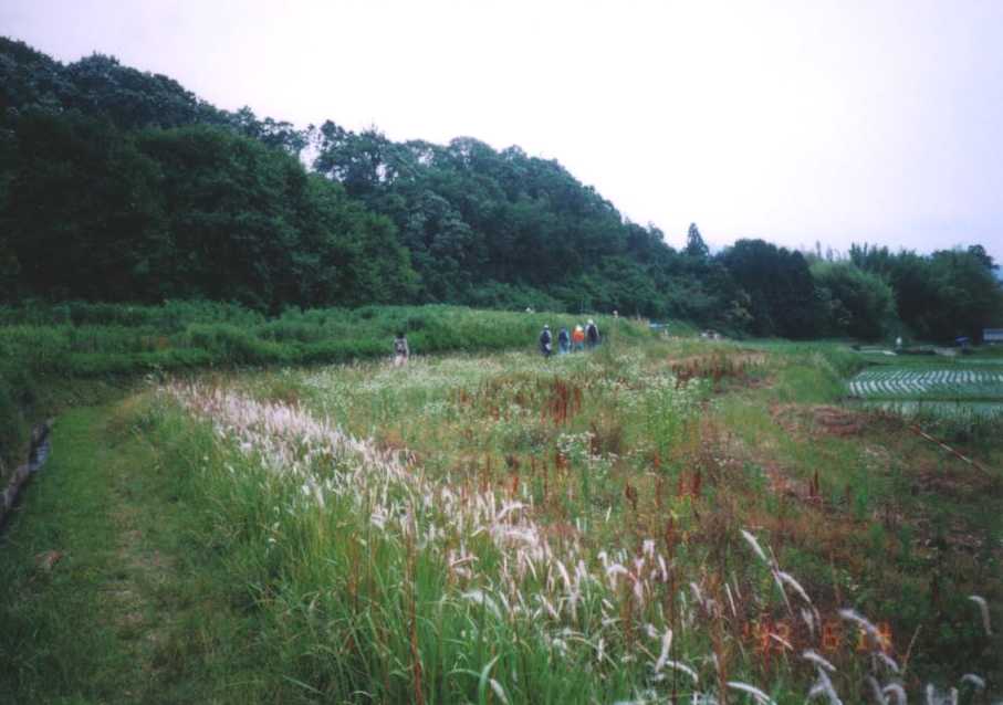 チガヤが美しいあぜ道(後ろは郷土の森) 6月ごろ