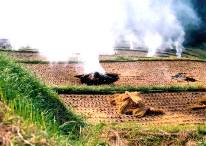 棚田の秋‐――― 籾殻焼き (芋谷川の棚田)