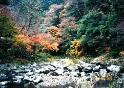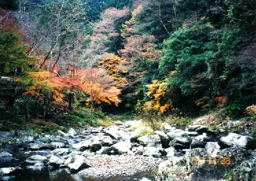 紅葉の美しい玉川峡(やどり青少年旅行村の河原にて)