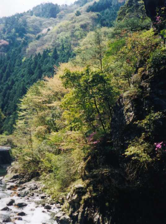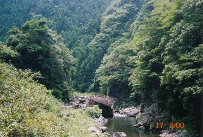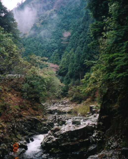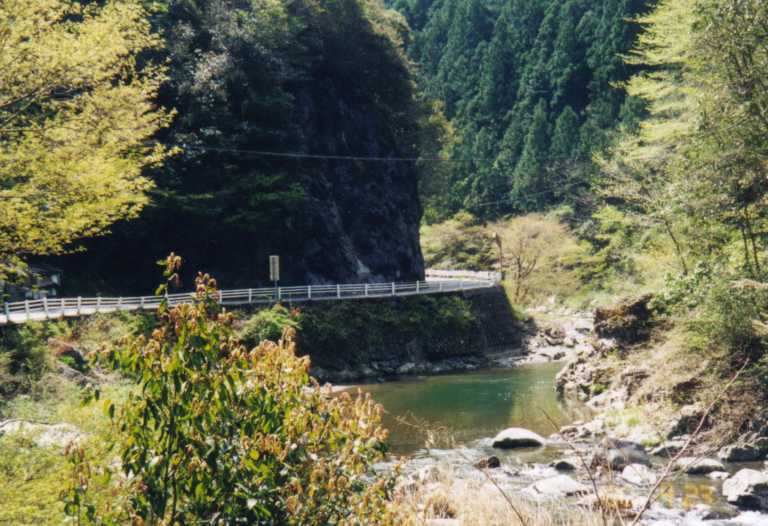 筒香から九度山まで七里、という古老の計算はどうか。一里=36町=約4Kという現代のキマリからすれば少々オーバーだが、昔の人にはいろんな1里があったらしい。(江戸時代の主要街道でも一律ではなかった。1里塚のあった東海道、中山道ではl里36町だったが、伊勢路は48町、佐渡は50町、山陽道は72町と大差があった。因みに36町1里に統一されたのは明治2年。)歩きやすさと歩きにくさで道の里程が伸び縮みしたんだから、丹生川の峡谷路が七里、はウナズケル。