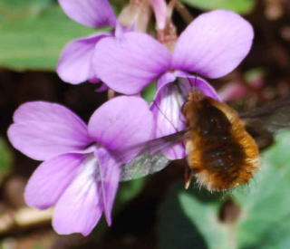 シハイスミレで蜜を吸う 「ビロウドツリアブ」 ツリアブ科
