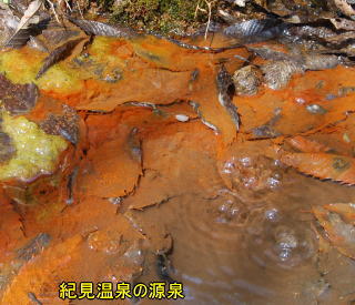 あちこちから温泉が湧いています。 鉄分が多い有馬の湯のようですが、昔は柱本の各家へ引いたそうです。