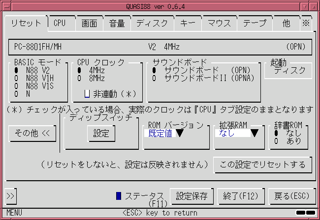 なお、ここでは QUASI88 のソースをコンパイルしてできた実行ファイル