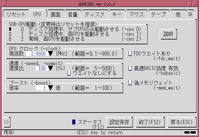 ソフトが正常にエミュレートできない場合、数字を大きくすると動くことがありますので試してみましょう