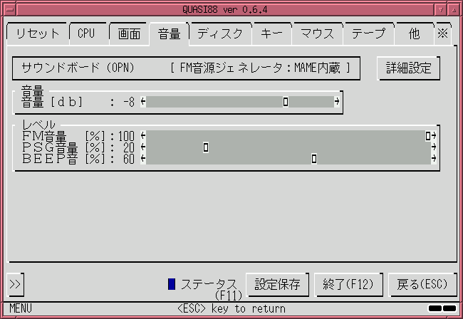 FM音源・PSG音源・BEEP音源の出力レベルの調整ができます。