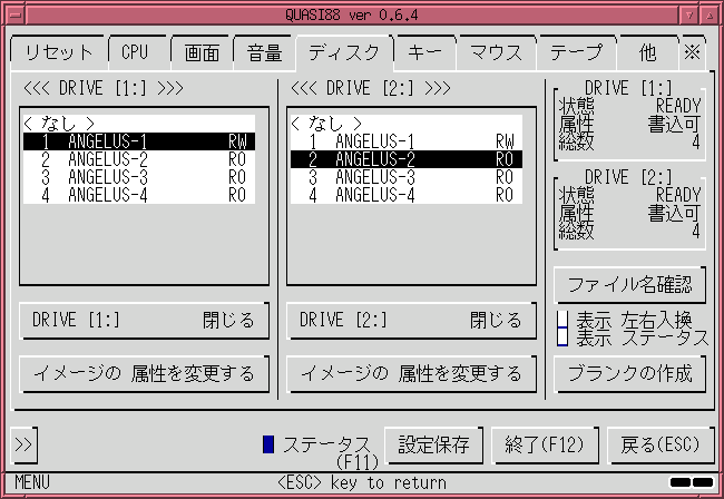 とすれば、QUASI88 の起動後にこのディスクイメージが読み込まれます。