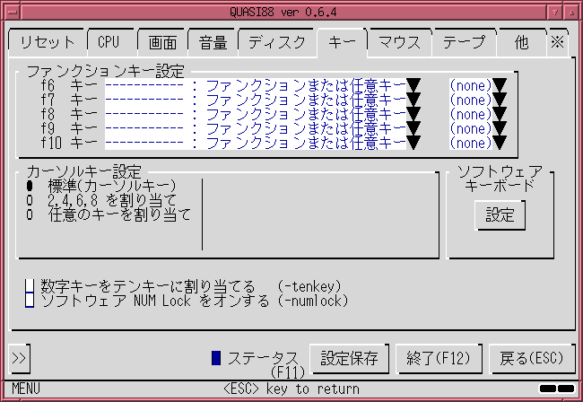 (この場合、エミュレータ上でF6~F10キーが使えなくなりますが、これらのキーはPC-8801では必須でないので問題ないでしょう)