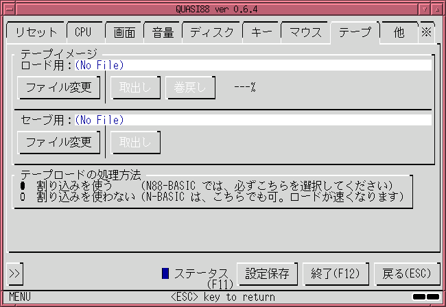 ロード用・セーブ用別々に、テープイメージを設定します。ロードは