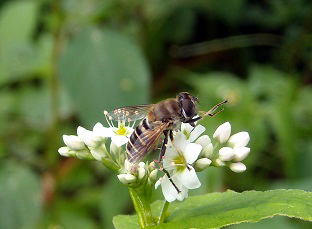 ハナアブの仲間 とソバの花