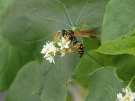 カメラを近づけてもおとなしくソバの花の蜜を吸っている。