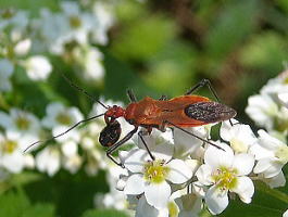 アカサシガメ(赤刺亀)は体長15〜16ミリほどのカメムシの仲間 小さい虫を捕らえて体液を吸う
