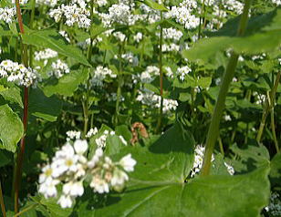 ソバ畑のシャクトリムシ(尺取虫)