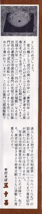 この話は、大阪・北浜のそば屋「手打ちそば三十石」でそばを食べたとき、箸袋が三十石文庫Aとなっていて、そこで紹介されていた話なので浪速にあったそばの歴史の一端だと思って書きとどめて置いた。![]()