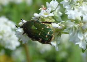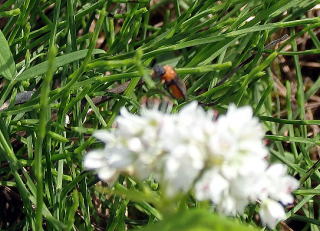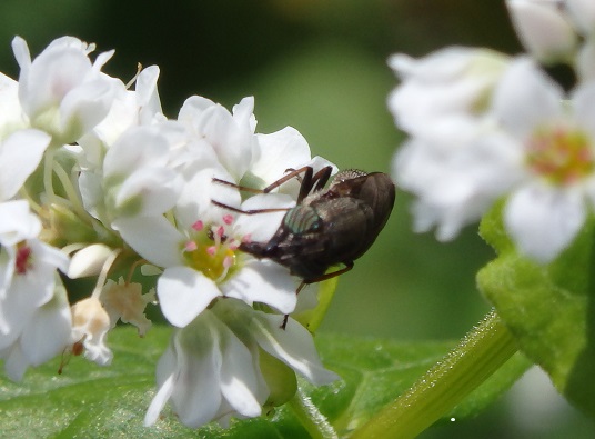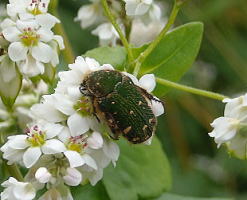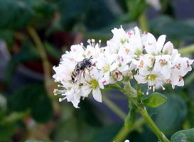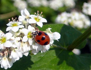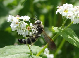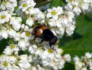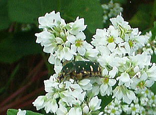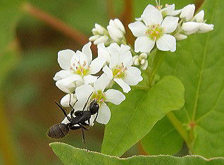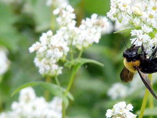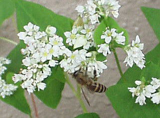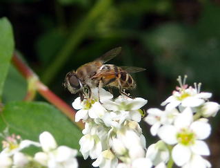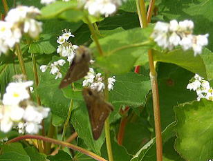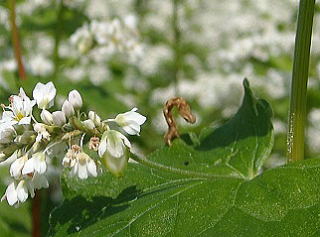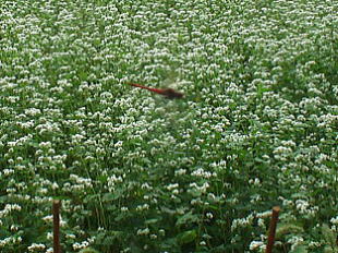 | このサイトはソバの花と虫たちの写真集です。虫媒による他家受精作物のソバは、花が咲きだすと多くの虫たちが飛来して受粉の手助けをします。このページでは、そんな訪花昆虫を中心にソバ畑に集まってくる虫たちの紹介をしています。 ただ、撮った写真から種別を同定して、和名・学名・(わかれば)英名までを掲載していますが、この部分には専門知識の欠如による間違いがあるかも知れません。 画像をクリックしてください 2004年9月28日 〜 2017年10月 3日更新 |
