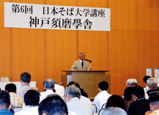 | 第6回 日本そば大学講座 神戸須磨学舎(主催:全麺協) 2010年7月17日〜19日 於:シーパル須磨 日本そば大学講座は、そばによる地域活性化と地域振興のために、そばについての幅広い知識と教養を身に付け、そばの食文化の普及、啓蒙についての指導的役割を担う人材を育成する目的で2005年に北海道・幌加内町で第1回が開催された。第2回は06年、長野県飯田市で開催された後、福島県喜多方市と埼玉県での開催を経て再び北海道・十勝新得学舎で第5回が催された。いずれも東日本地域である。 今回の第6回 神戸須磨学舎は初めて西日本地域で行われたもので、総勢260人が北海道から九州までの各地から参加した。三日間・8講座のなかで、わたしは初日・第二講で90分間下記のテーマについて話す機会を得た。 第二講 上方からみた そば切り・初期の歴史