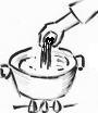 ---家庭の台所で手打ちそばを美味しく茹でる--- 【初めに準備するもの】 大きな鍋 タイマー 麺上げ 金ザル ボール(水洗い)(氷水) (下に受け皿) 1.家庭の熱源の場合にお奨めする茹で方 ![]() @沸騰している湯に一握り(一人前か二人前)のそばをやさしく入れ、しばらくして、沈んでいるそばを菜箸でほんのすこしほぐします。 ※家庭の場合:ふきこぼれに注意し、火力の調整を心がけます。 (びっくり水は入れません) A沈んだそばが(再沸騰して)浮き上がって泳ぐようにただよい始めた時を「茹での始まり」と考えて、ここからの時間を計ります。(タイマーを使い正しく計ることがポイント)