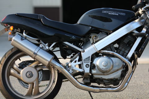 ホンダ ブロス プロダクト1(650)のマフラーを製作しました。 このオートバイは、細身でシンプルな車体ですので、 イメージが損なわれないデザインになる様,製作しました。