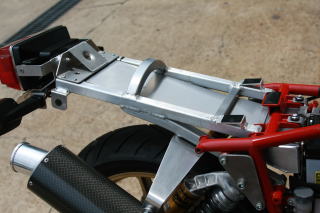 シートレールは純正をカットしてアルミ合金7N01の角パイプ