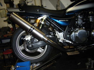 GPZ900R用の某メーカーのマフラーをアップタイプ