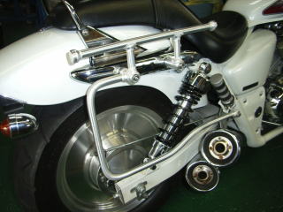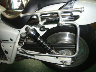 ホンダマグナのサイドキャリアをアルミ合金で製作しました、マフラーが有る為