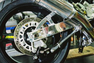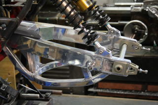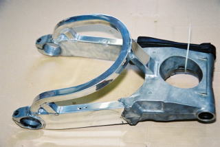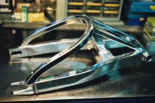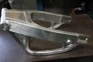 スイングアームの製作、加工には特殊アルミニウム合金7N01を使用します。