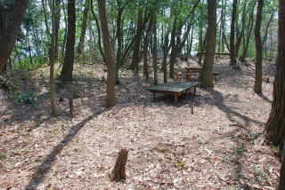 | <アクセス> 国道8号線の八幡東の交差点を東に折れ、県道509号線に沿って約5km進むと、トンネルの手前に石田山公園の駐車場(約10台駐車可能)がある。この駐車場の階段から、山に入る。道はハイキングコースになっているが、それなりにきつい道ではある。約30分歩くと、見晴らしの良い山頂の曲輪に到達する。石田町の日吉神社からも登ることができる。石田町は石田三成の出身地。(2010.04.18) |