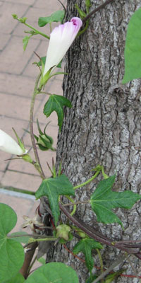 あさがおや昼は鎖おろす門の垣 ばせを 爽やかに咲く朝顔も、昼には花を閉じる。 それにならって、老後は門に鍵をかけ、 静けさを楽しむことにしよう。 三ケ月や朝顔の夕べつぼむらん ばせを 「つぼむ」の両義性=萎む/蕾む cf. 小宮豊隆著 『芭蕉句抄』(岩波新書)1961 |