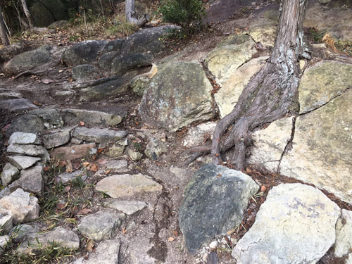 《ネズの根っこ》 photo 2019. 11. 6 《セザンヌの岩場》に自生するネズ(杜松、別名はネズミサシ、ムロ、モロノキ等)は、檜科の針葉樹で、岩場で根強く生長し、盆栽にも使用される。「樹液の流れ」を抑制する盆栽は、「気の流れ」を制御する中国古来の気功術に関係し、「不老長寿」の思想に繋がる。 ネズを播磨地方では「ブロー」と呼ぶが、その名称は榁(ムロ)と「風呂」の合体? というのは水に強く、かつて「風呂」や舟の材として使用された。肌触りの良い材質で、手摺材にも最適(「随風庵」階段手摺に使用)。しかし「ネズ」はネズミサシの短縮形で、針状の葉に触れると極度に痛く、ネズミ除けに使用されたことに由来する。 ネズの実は「杜松実」(としょうじつ)、「杜松子」(としょうし)と呼ばれ、漢方の生薬として使用される。ジンの中国名は「杜松子酒」で、本来はヨーロッパ産ネズの薬用酒。 |