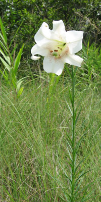 高砂のその名がゆかし山の百合 「野分の道」北側 高砂は台湾の古称、別名台湾百合。 2008.8.20 |