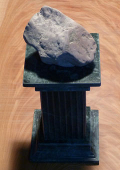石川虚舟 《 ヘルダーリンの忘我 》 2012 石灰岩、台座(大理石、100×100×160mm) 残雪や足を滑らす城の罠 虚舟 |